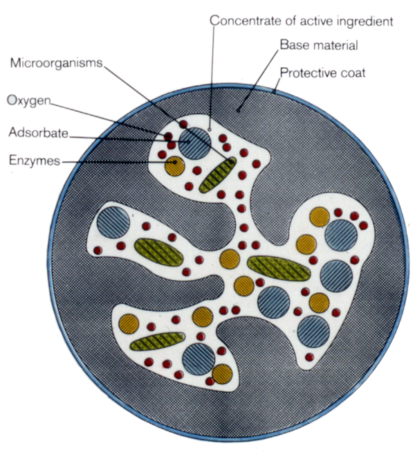 It is common to define Microencapsulation as the embedding of at least one ingredient (active agent) into at least one other (shell material). The active agent is usually not suitable to use it directly due to several reasons: low solubility, reactivity (to low or high), stability (low). On the other hand, it may be of advantage to optimize the properties of the active agents, e.g. by using controlled release. For all practical aspects a common classification into two basic methods can be made: